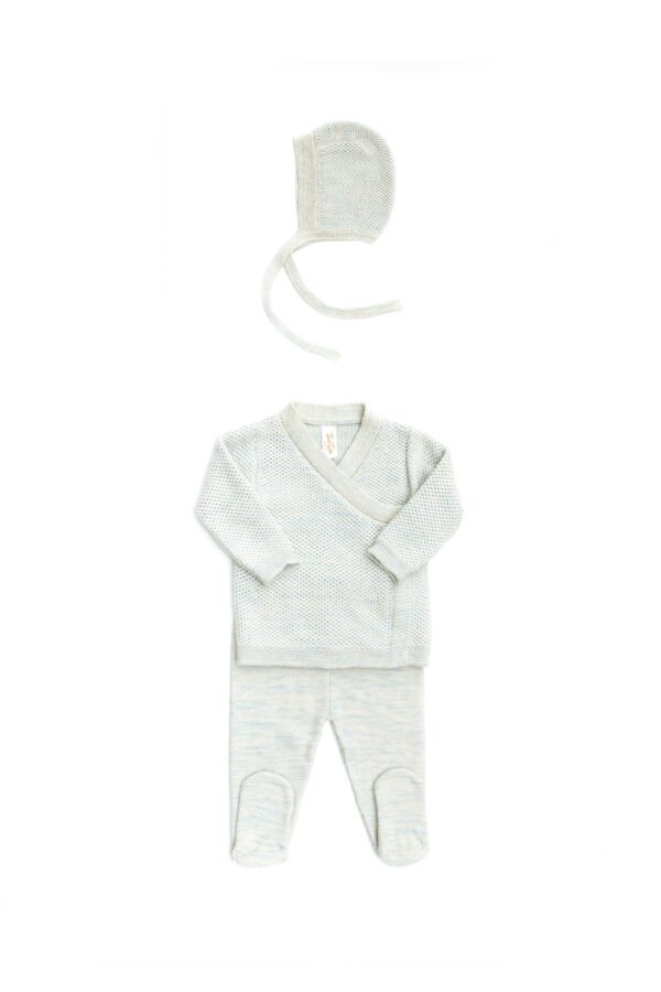 Set 3 Pcs. Kimono + Pant + Bonet – Celeste